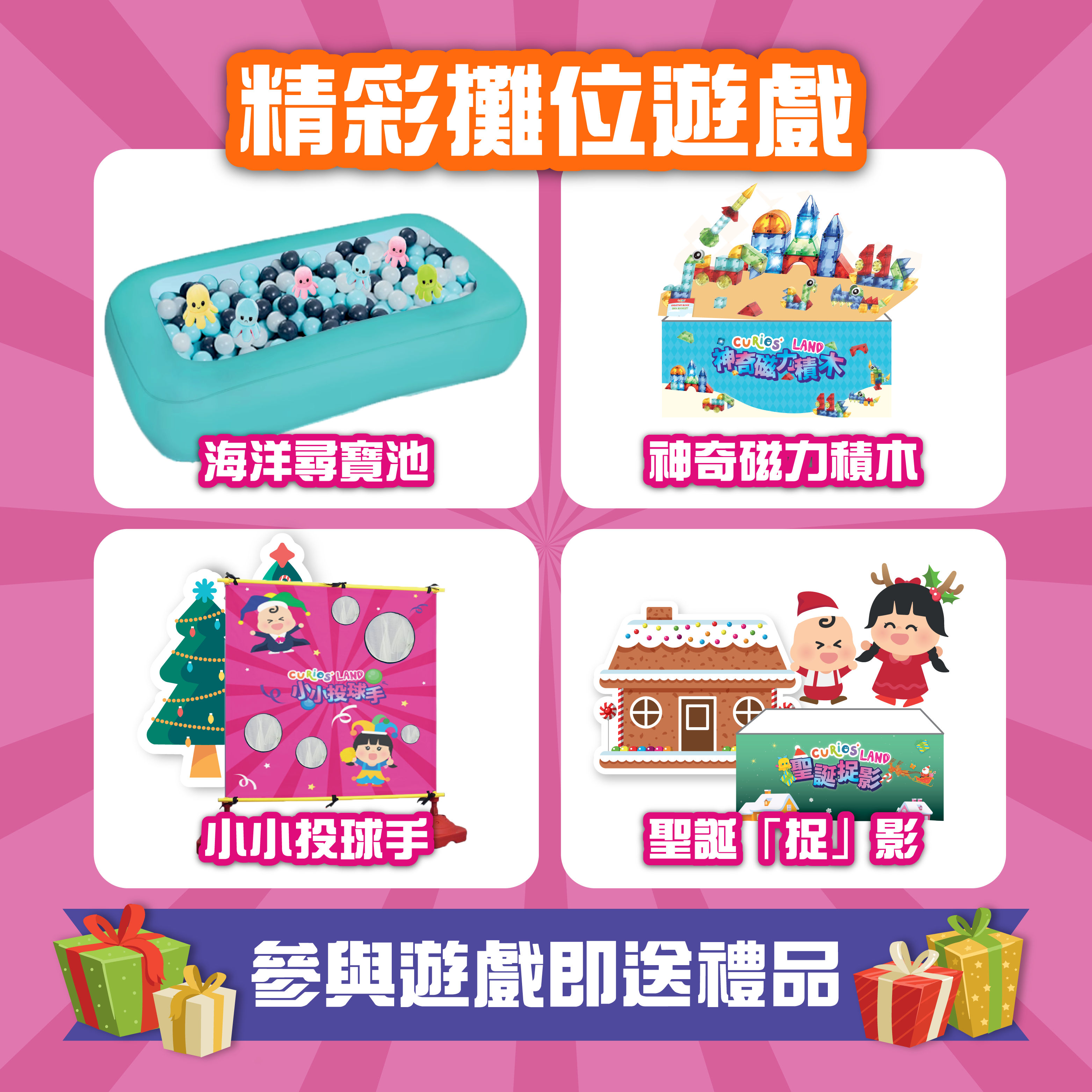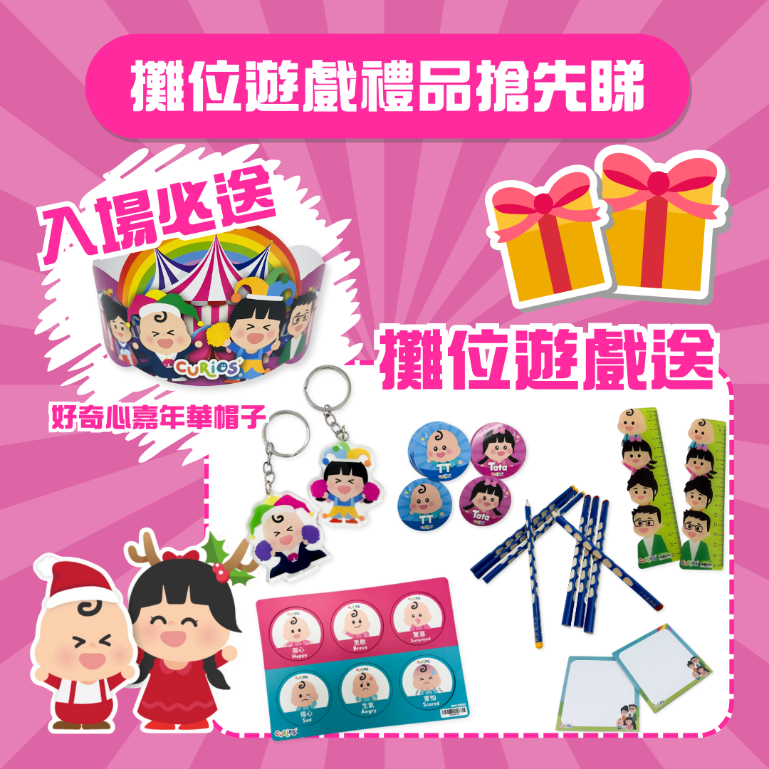 Curios® TT & Tata 將會化身聖誕老人,隱藏在場內不同位置,小朋友可以在場內尋找他們的身影兼合照打卡,最快集齊指定的五款造型並與他們合照之後,就可以獲得Curios®產品一份,先到先得,送完即止。