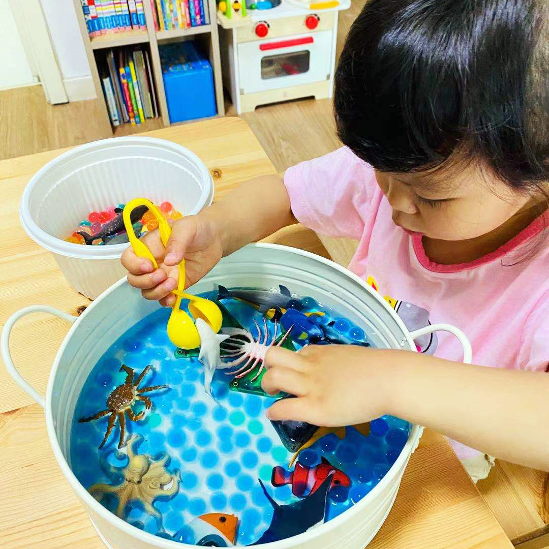 用Pebble Stone同Rainbow Waterbeads同BB玩Sensory Play,可以俾小朋友從觸覺上了解呢個世界,滿足BB嘅好奇心。同時,用以上教具玩顔色分類游戲都可以訓練小朋友嘅耐性同專注力。Pebble Stone可以俾BB玩疊石仔游戲,極考驗BB手眼協調同定力,都對培養專注力好有幫助。