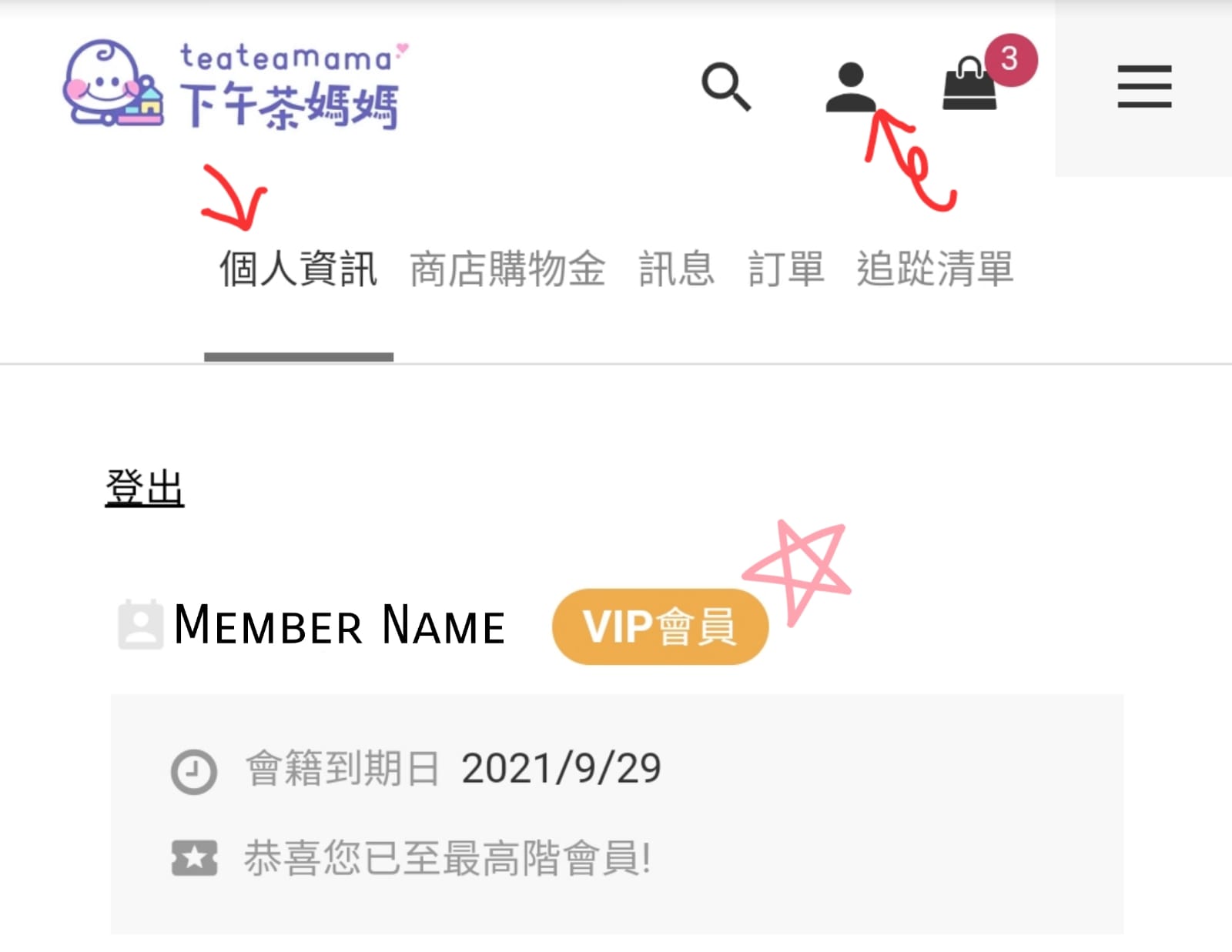 登入網站後,選取 個人資訊 頁面,即有顯示 會員級別徽章 及 會籍到期日。