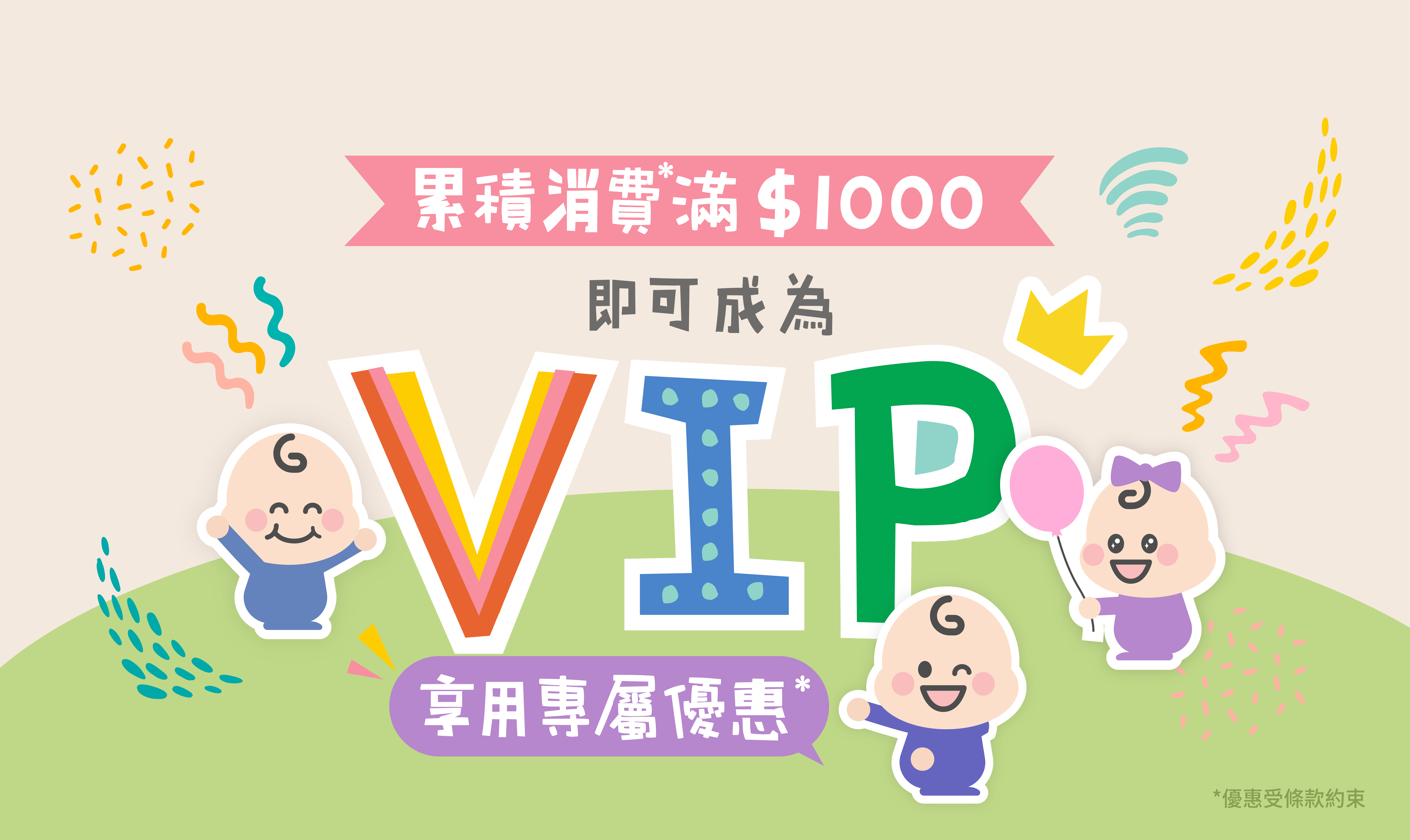 - 累積消費*滿$1000 即可成為VIP會員,有效期為一年