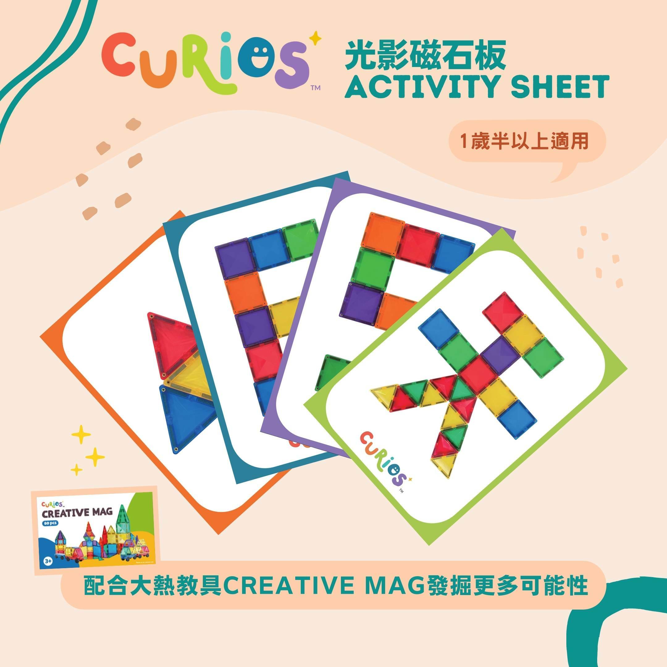 Curios™️ 為Creative Mag光影磁石板而設既Activity Sheet PDF版本🤩,提供下載總共4️⃣個學習範疇💭、超過60個拼砌idea‼️俾小朋友學習中文字、英文字、數字同埋唔同形狀🧠,發掘更加多玩光影磁石版嘅可能性👾。