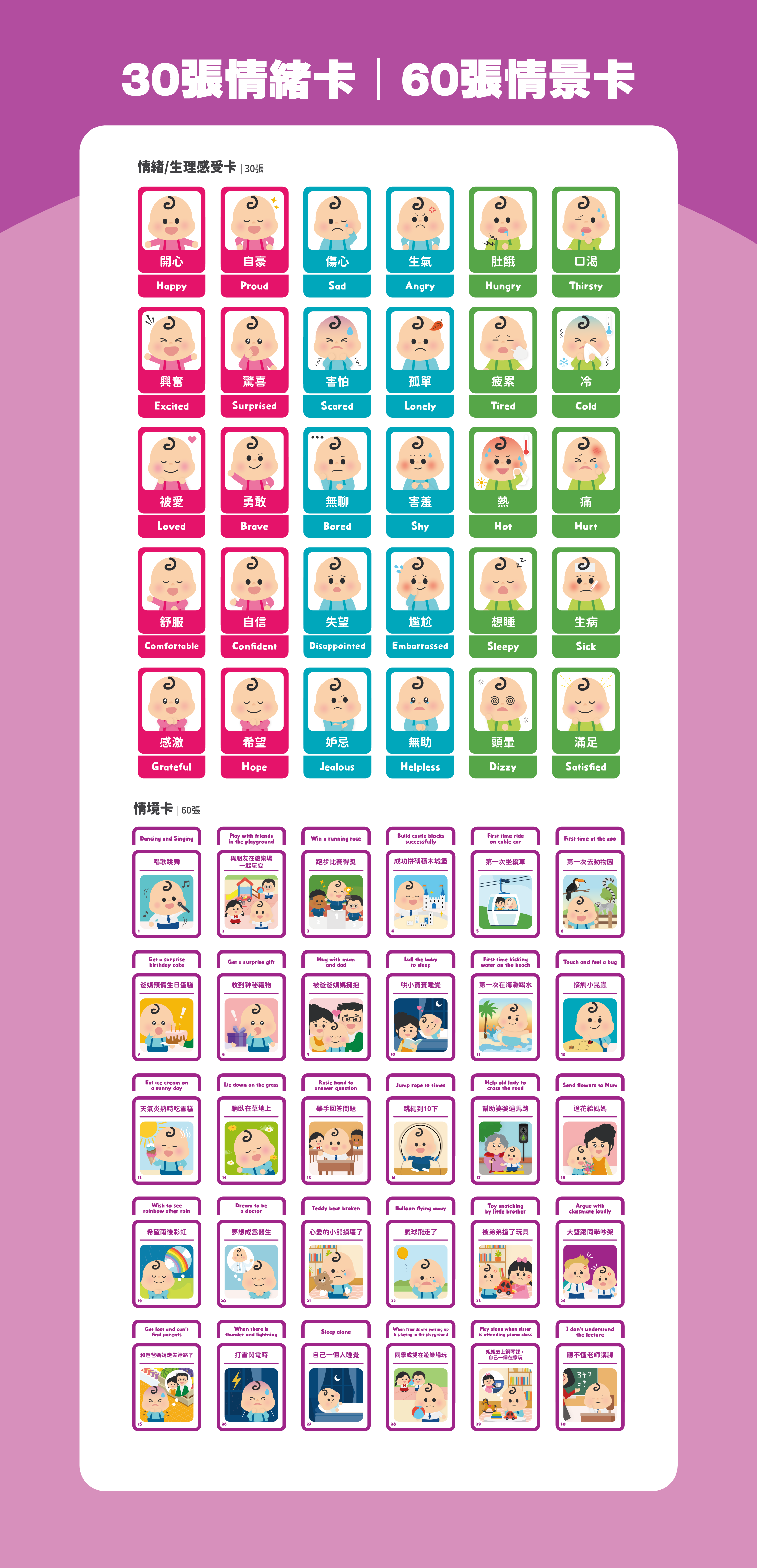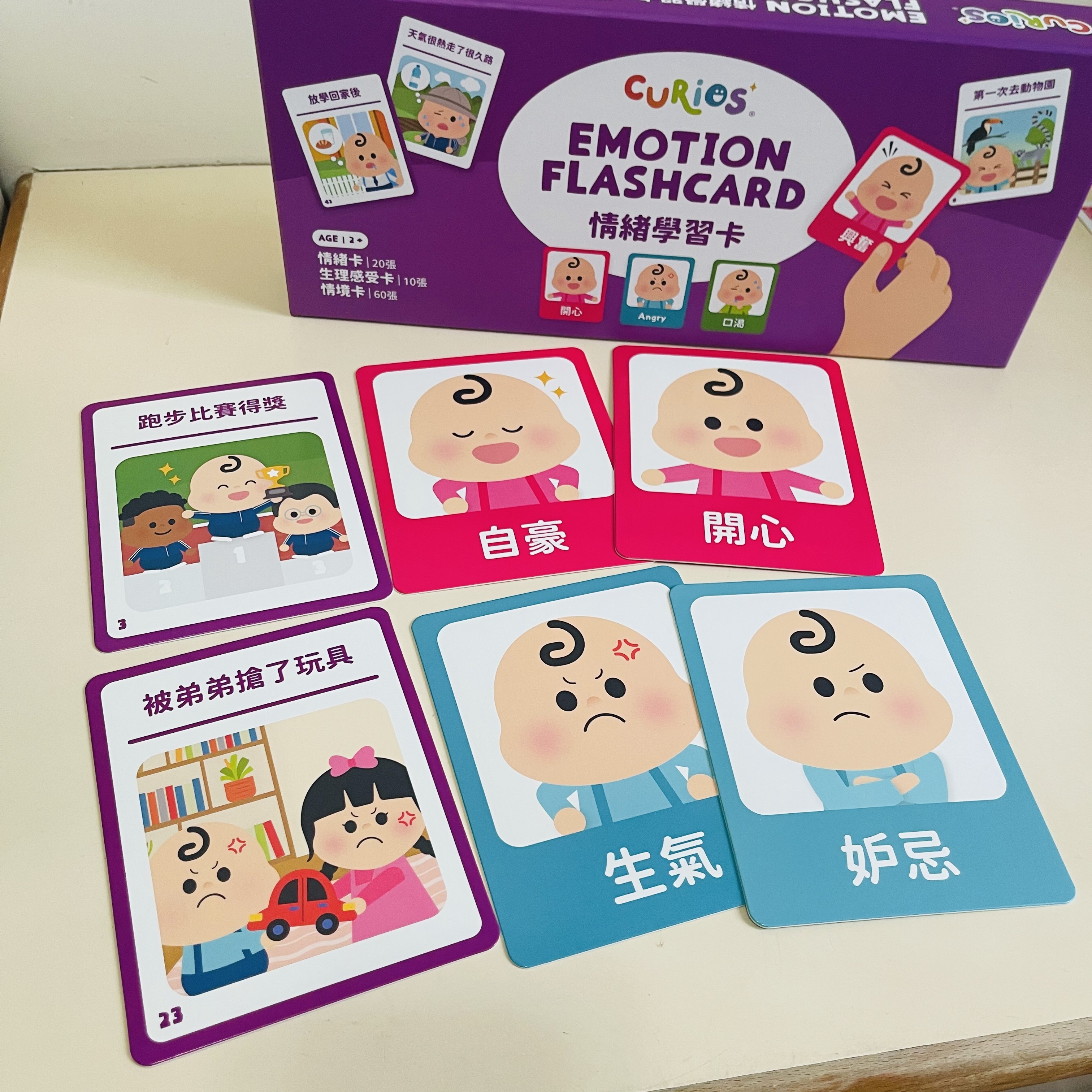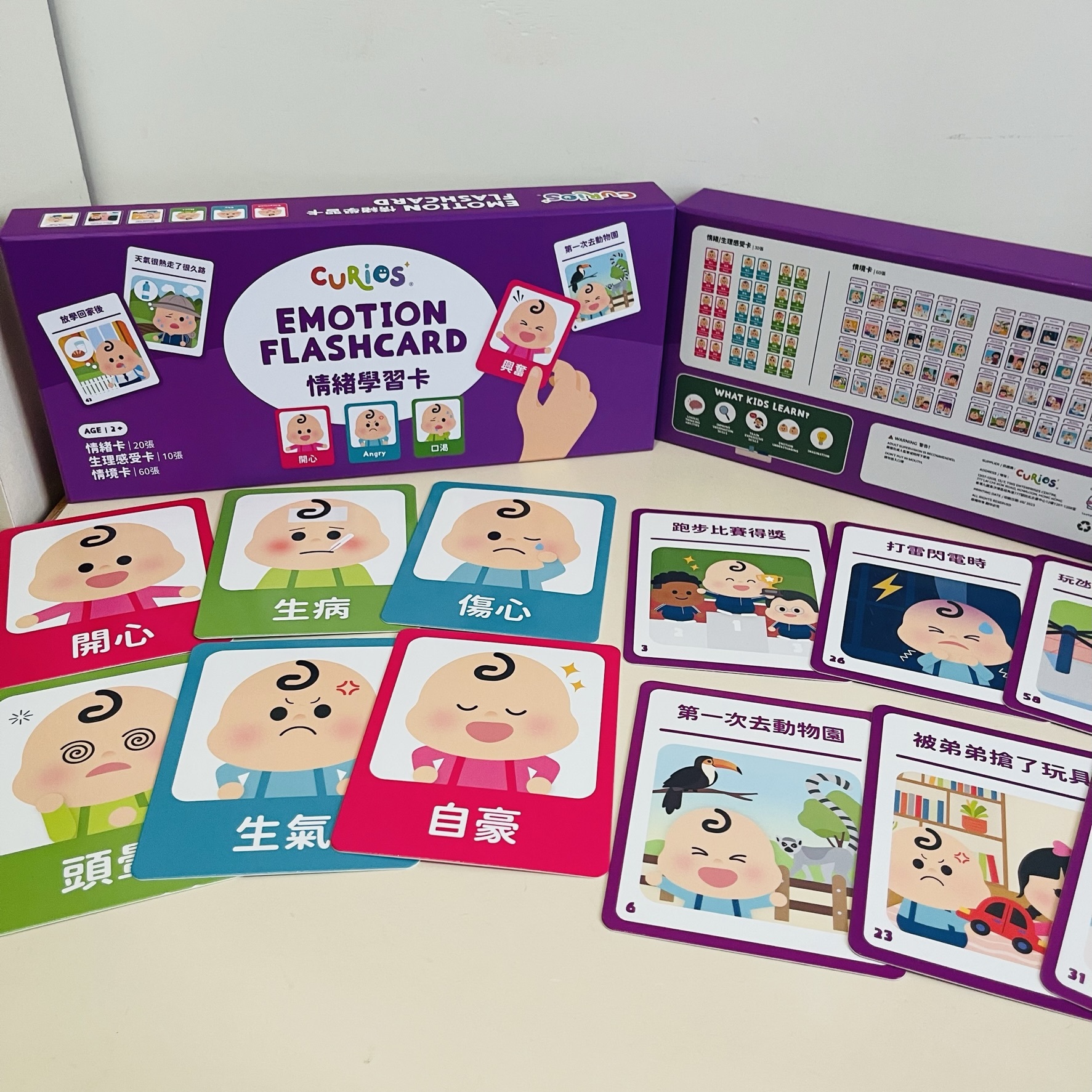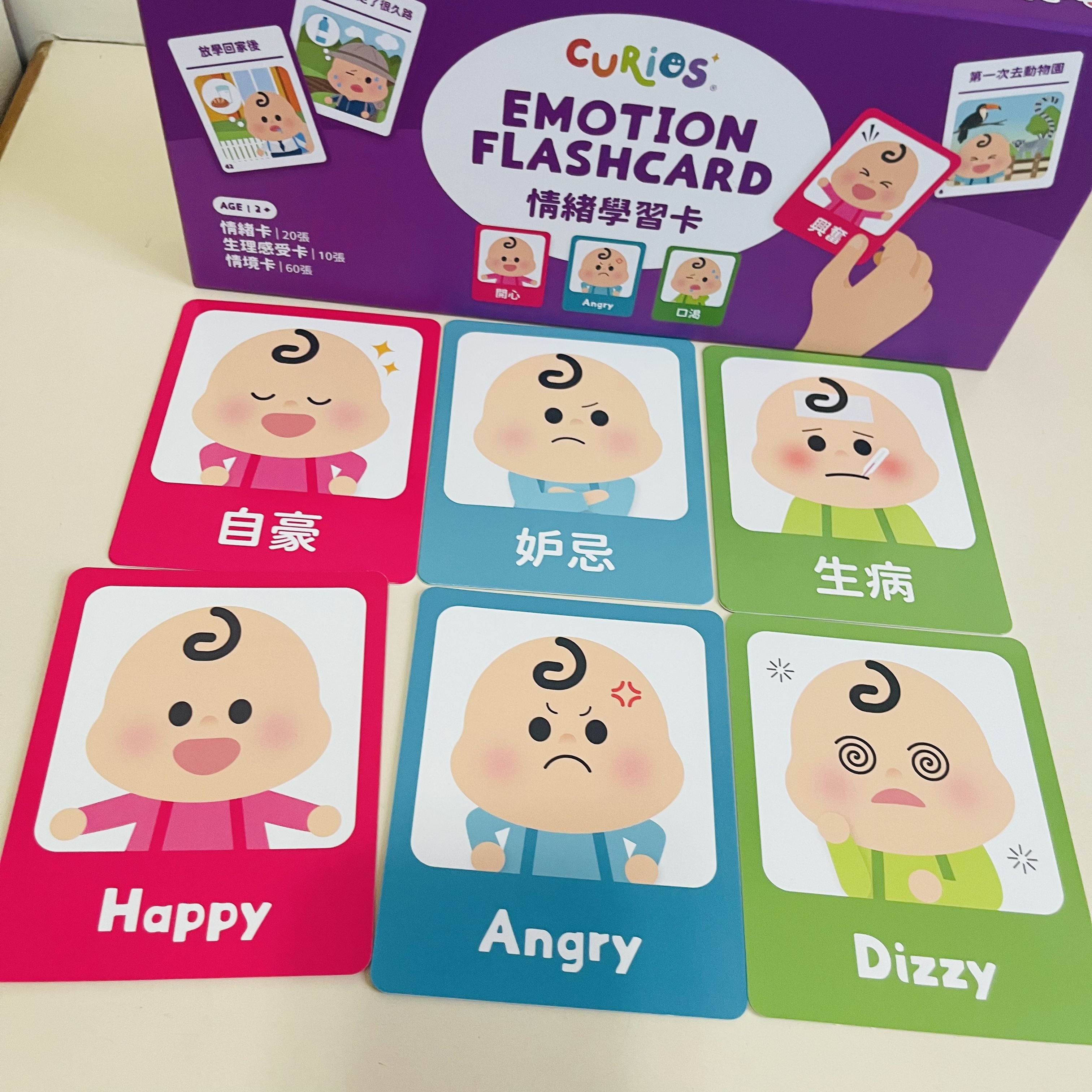 香港品牌🇭🇰Curios® Emotion Flashcard一盒30張兒童情緒卡➕60張情景卡🌈,令幼兒輕鬆玩配對遊戲matching game,學習各種情緒emotions和相應日常情景scenarios💖~