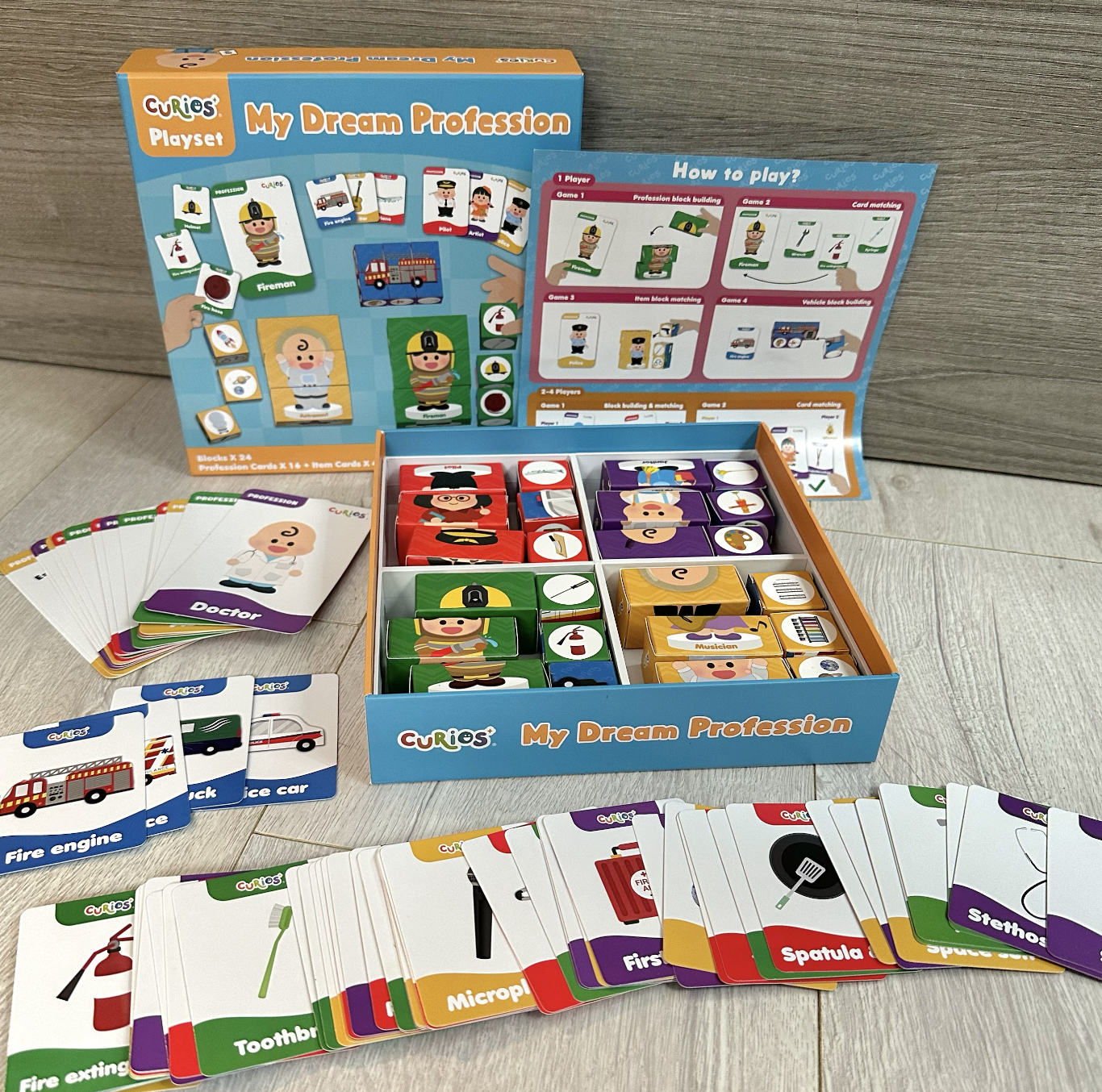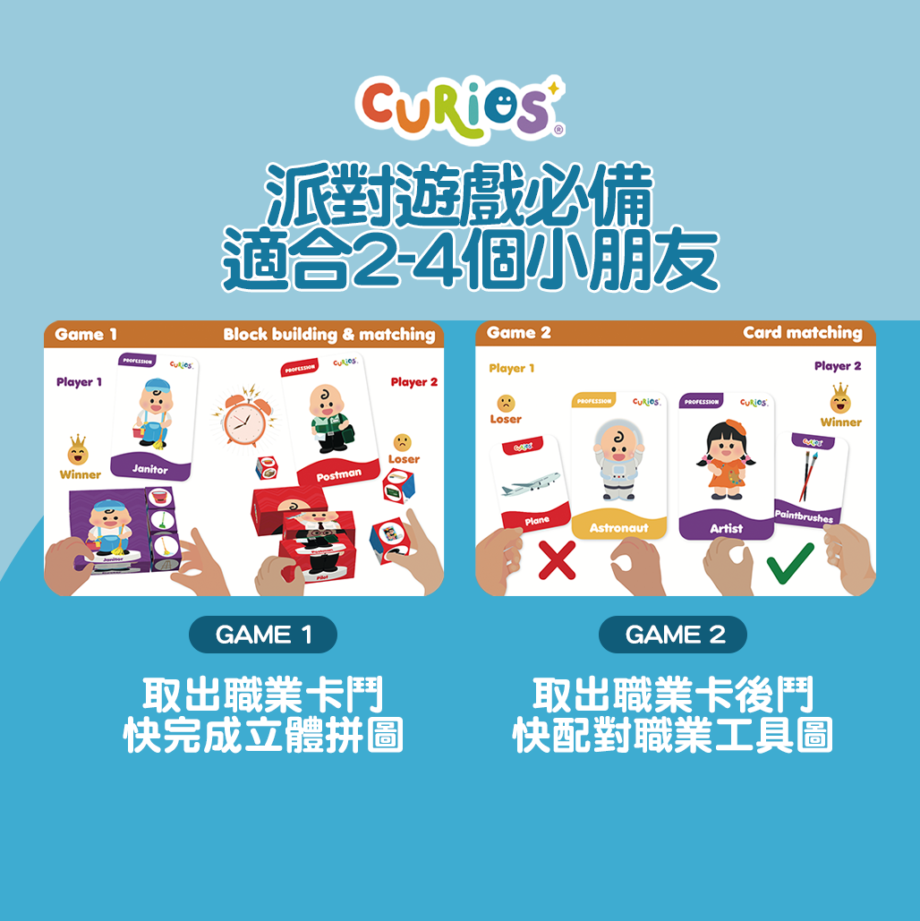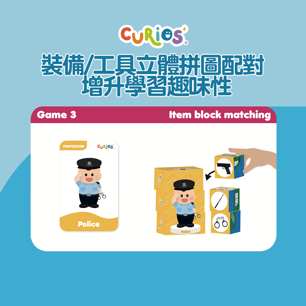 推介【Curios®夢想職業家遊戲盒】,透過立體積木與遊戲卡讓小朋友探索16個不同職業,從而認識到不同職業的裝備與工具,滿足小朋友對未來夢想職業的想像力!