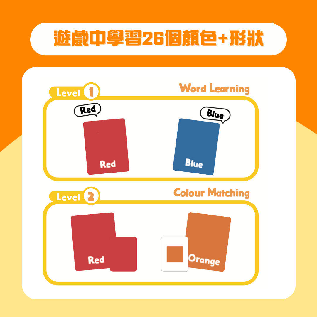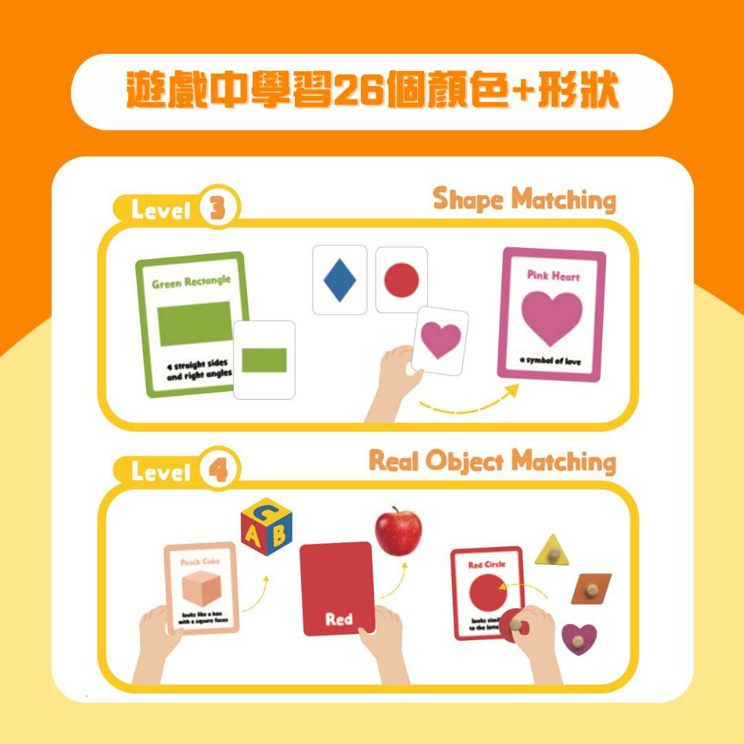 ✅ 一邊玩配對遊戲、一邊學習26個顏色與形狀英文名稱