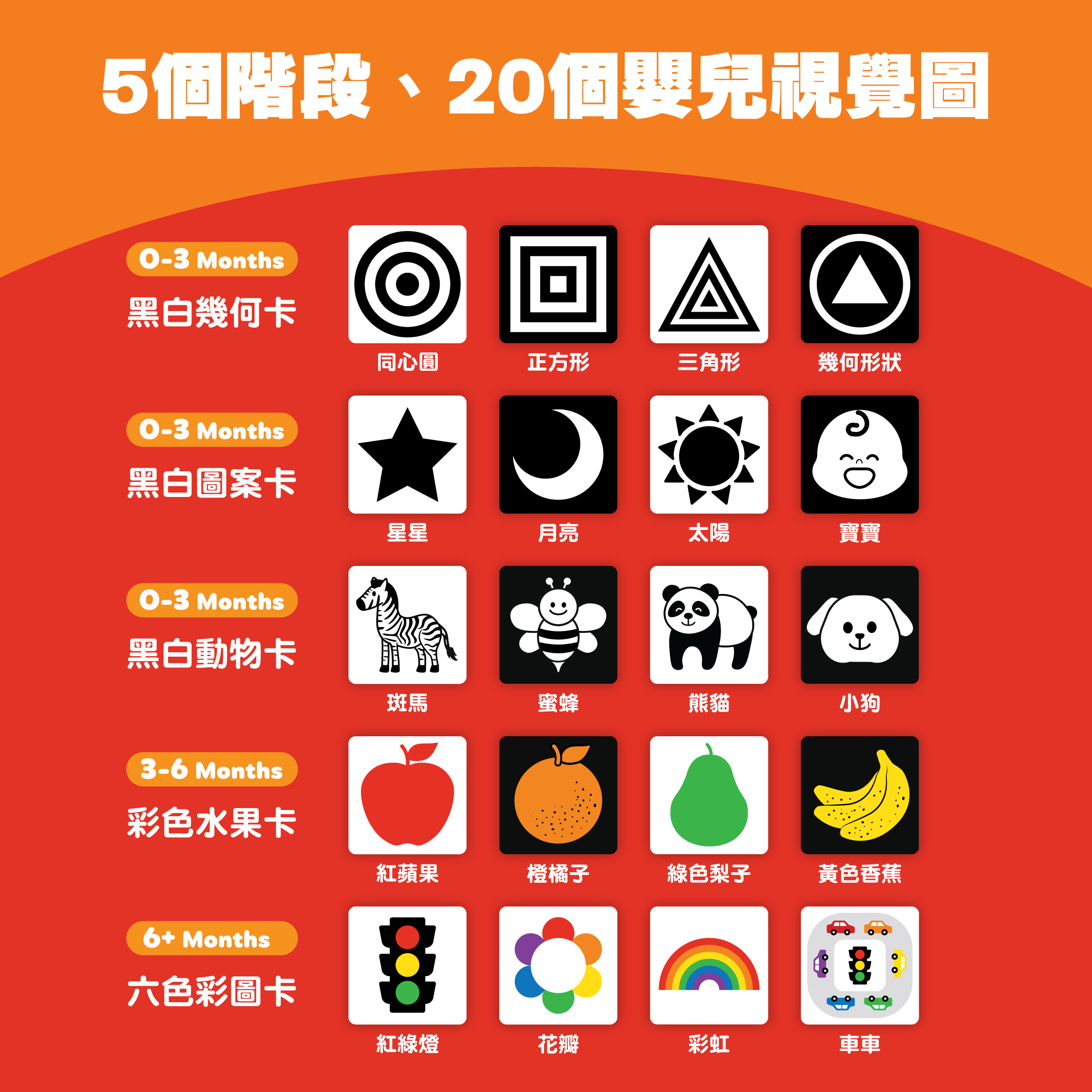 🌈5個階段、20個嬰兒視覺刺激圖卡