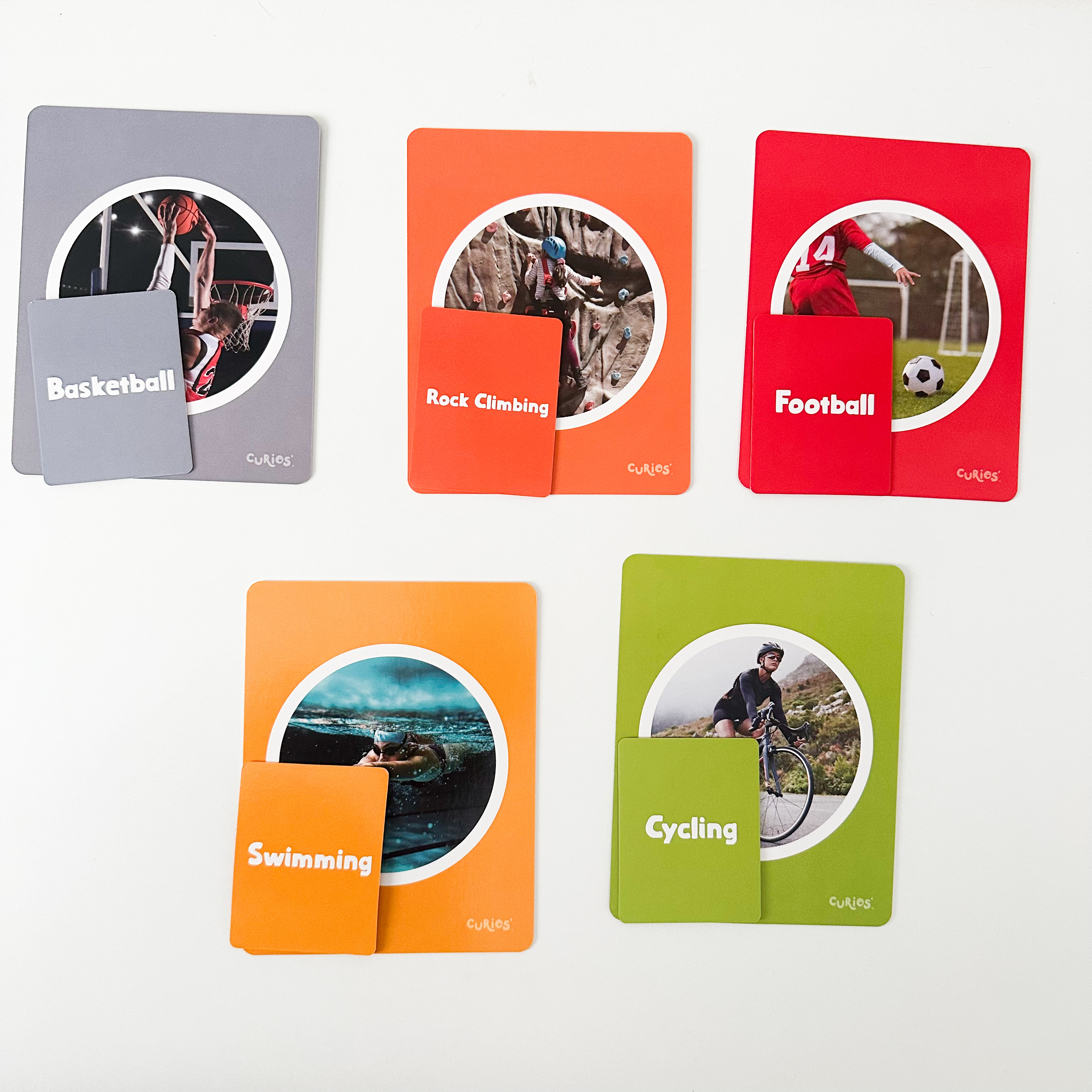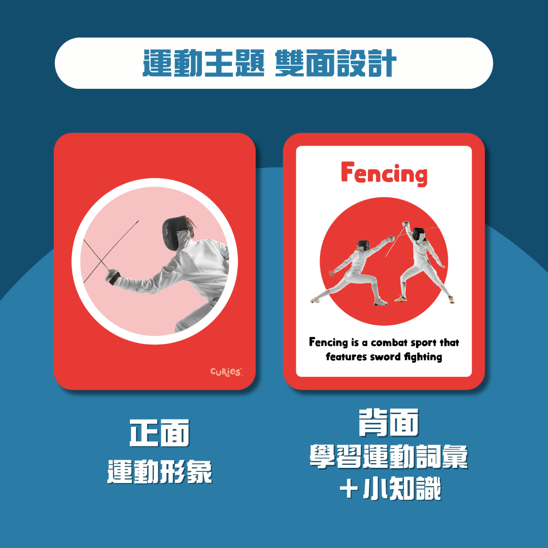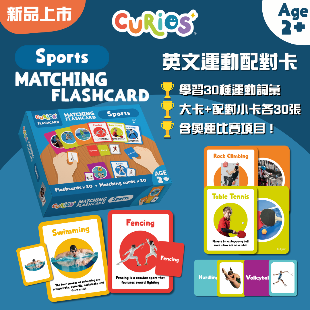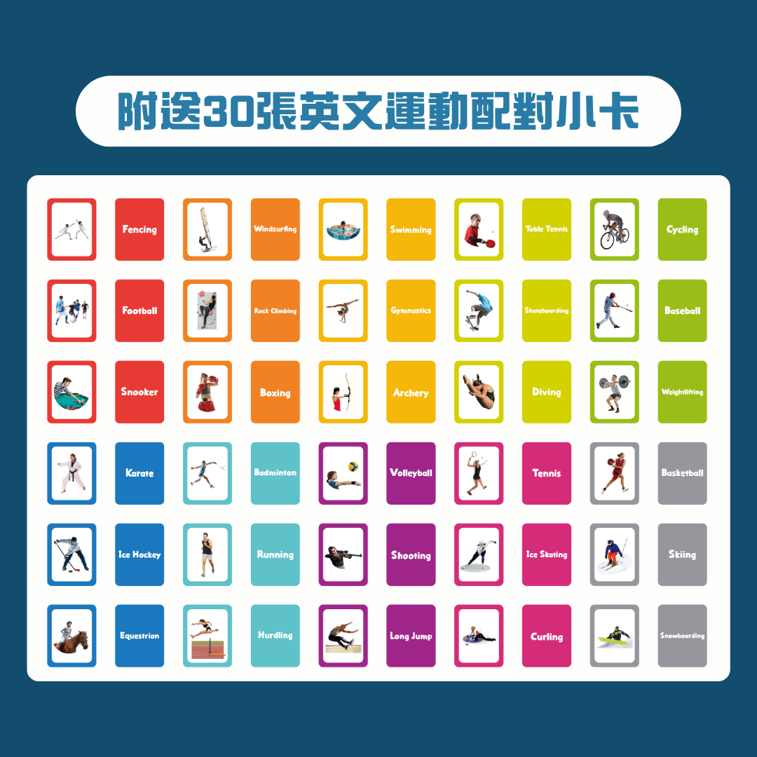 Curios® 英文運動配對卡包含較常見嘅30種運動⚽️🏀🥋🏓🏸🏊