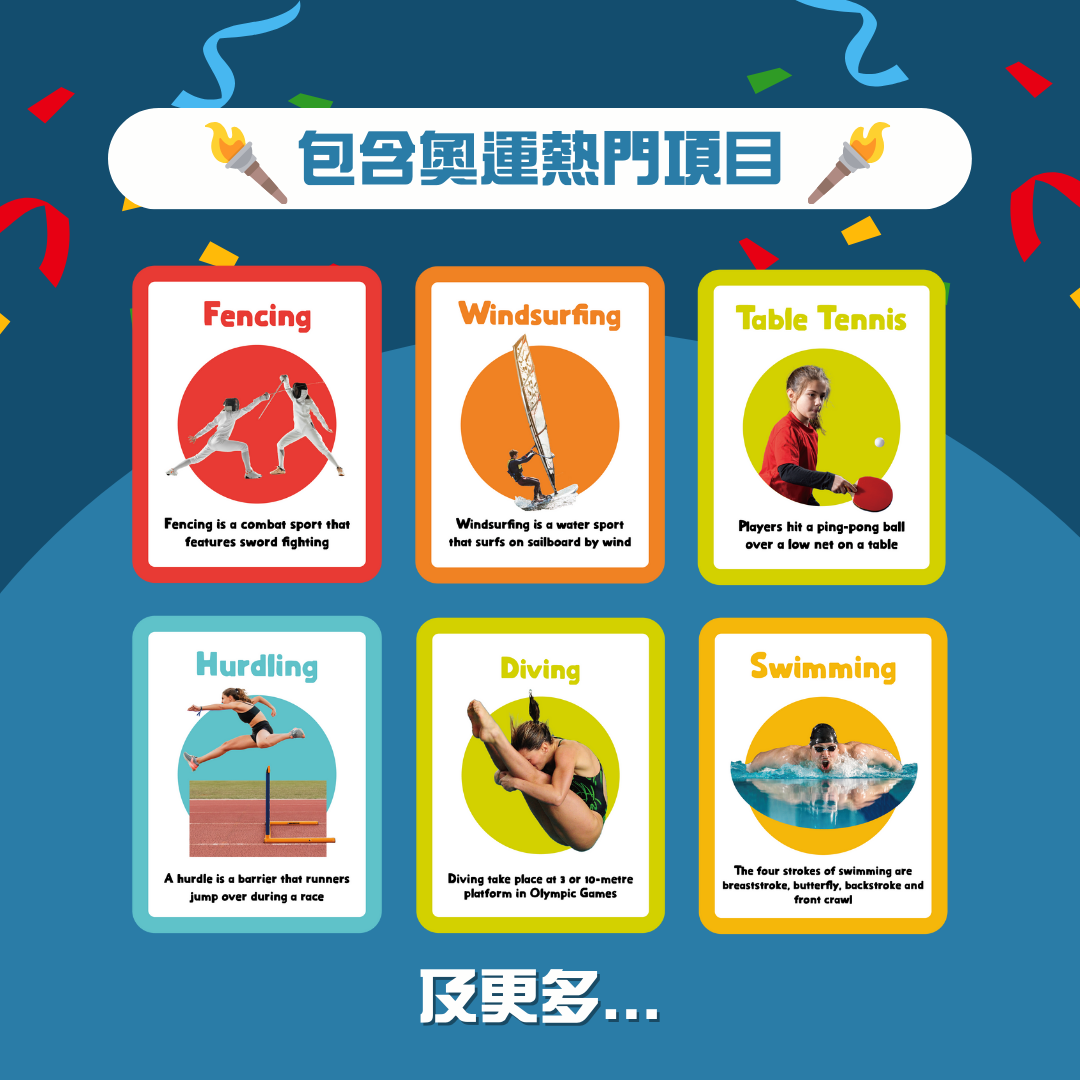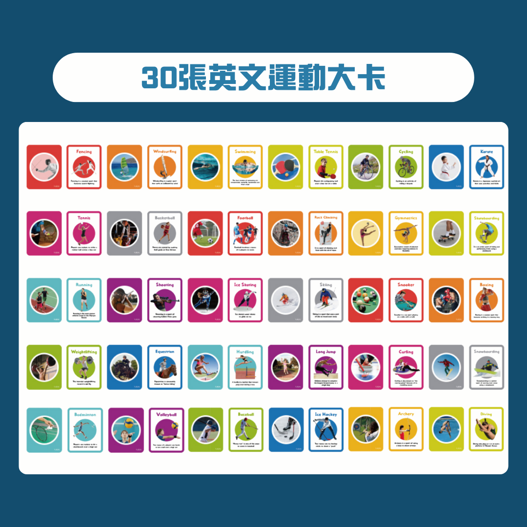 👉🏻 一盒有齊30張英文運動字卡+30張運動配對小卡