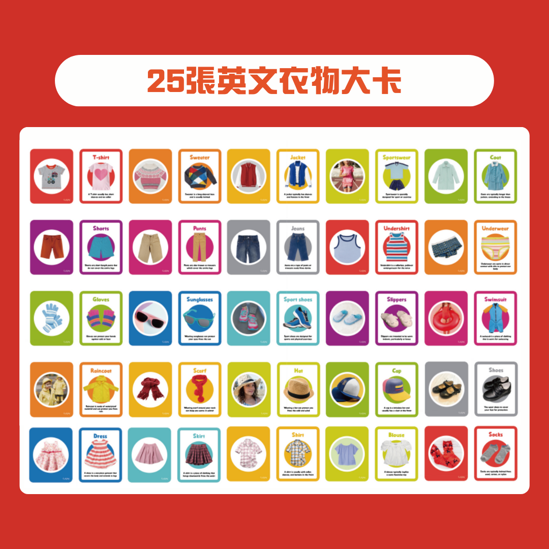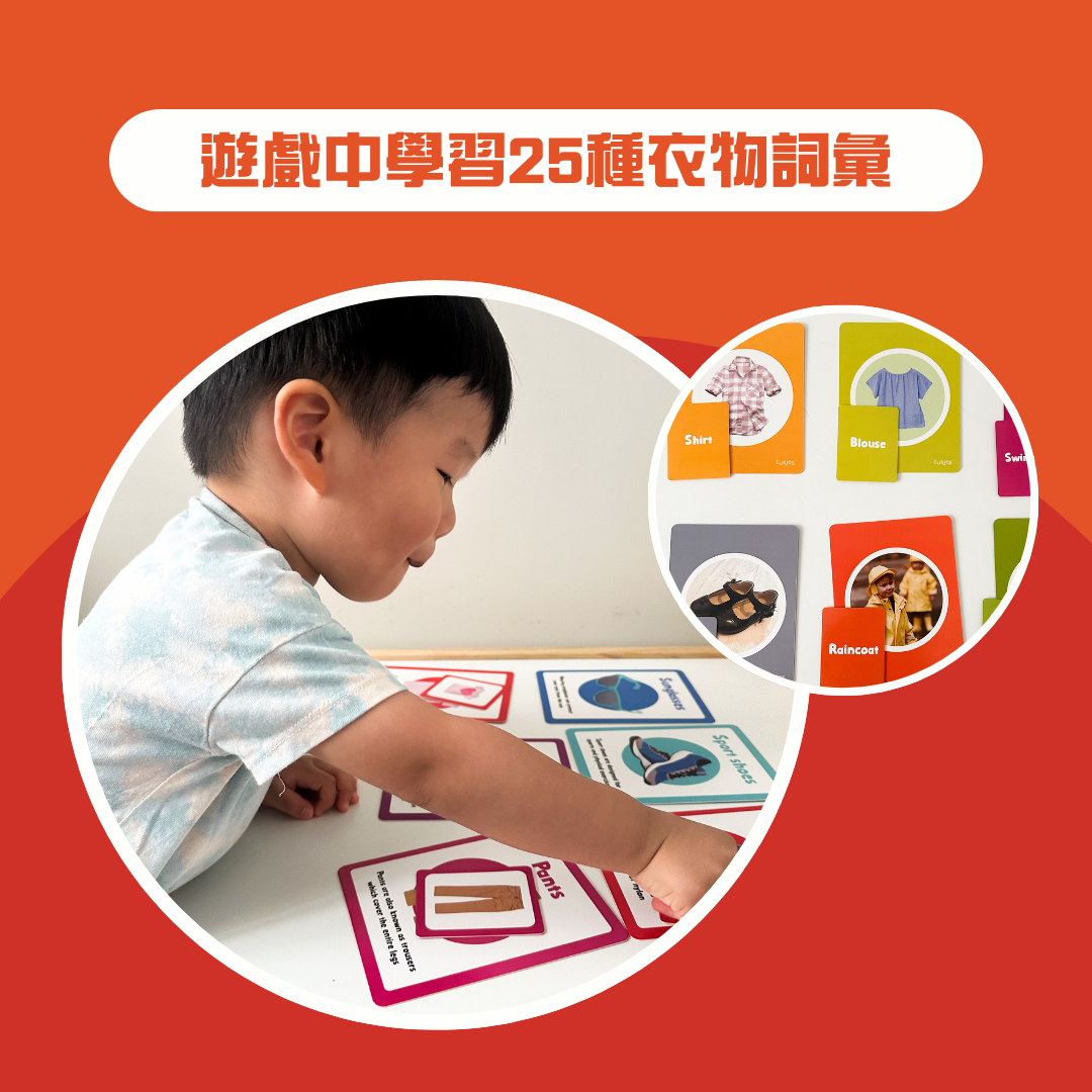 👉🏻 一盒有齊25張英文衣物大字卡+25張衣物配對小卡