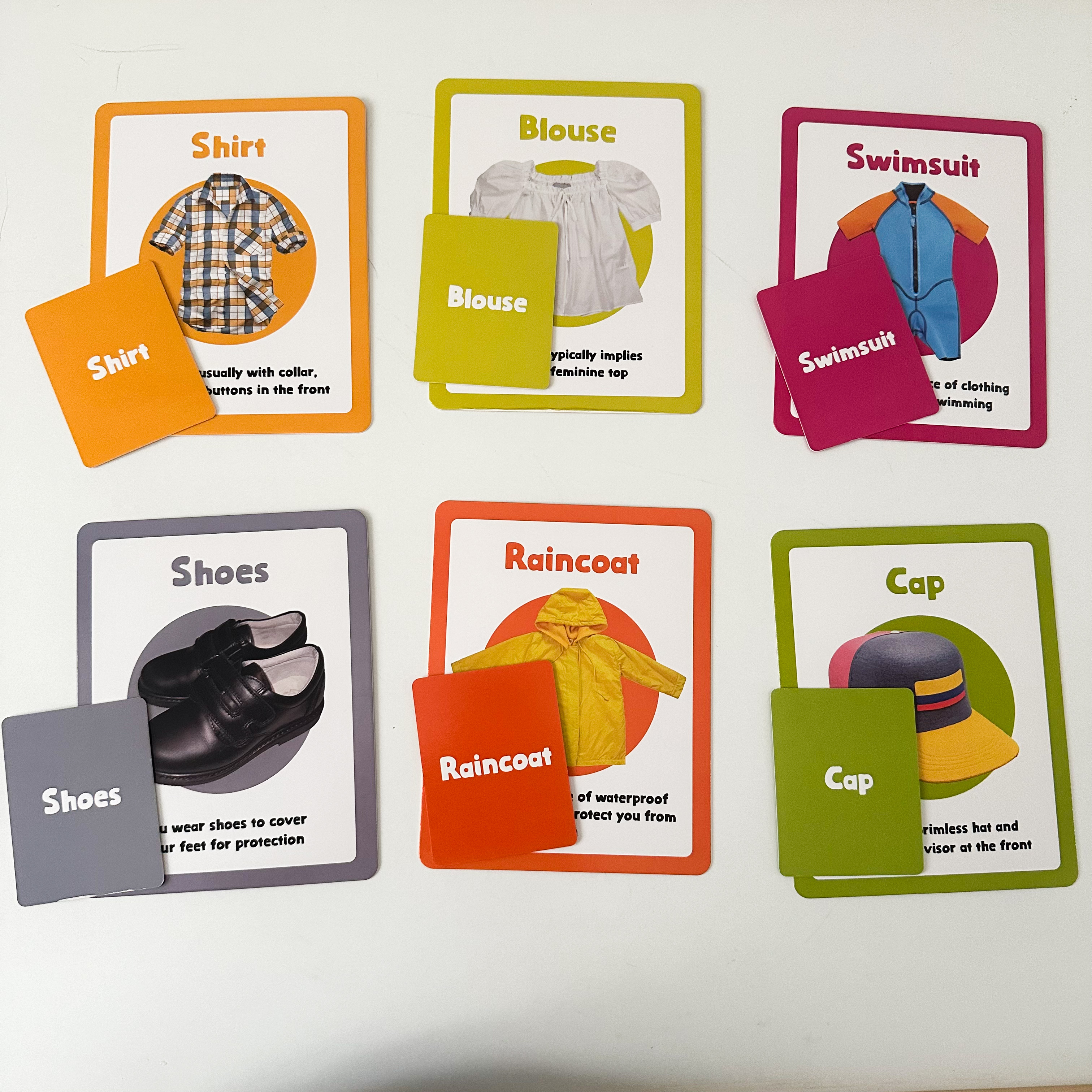 👉🏻 一盒有齊25張英文衣物字卡+25張衣物配對小卡
