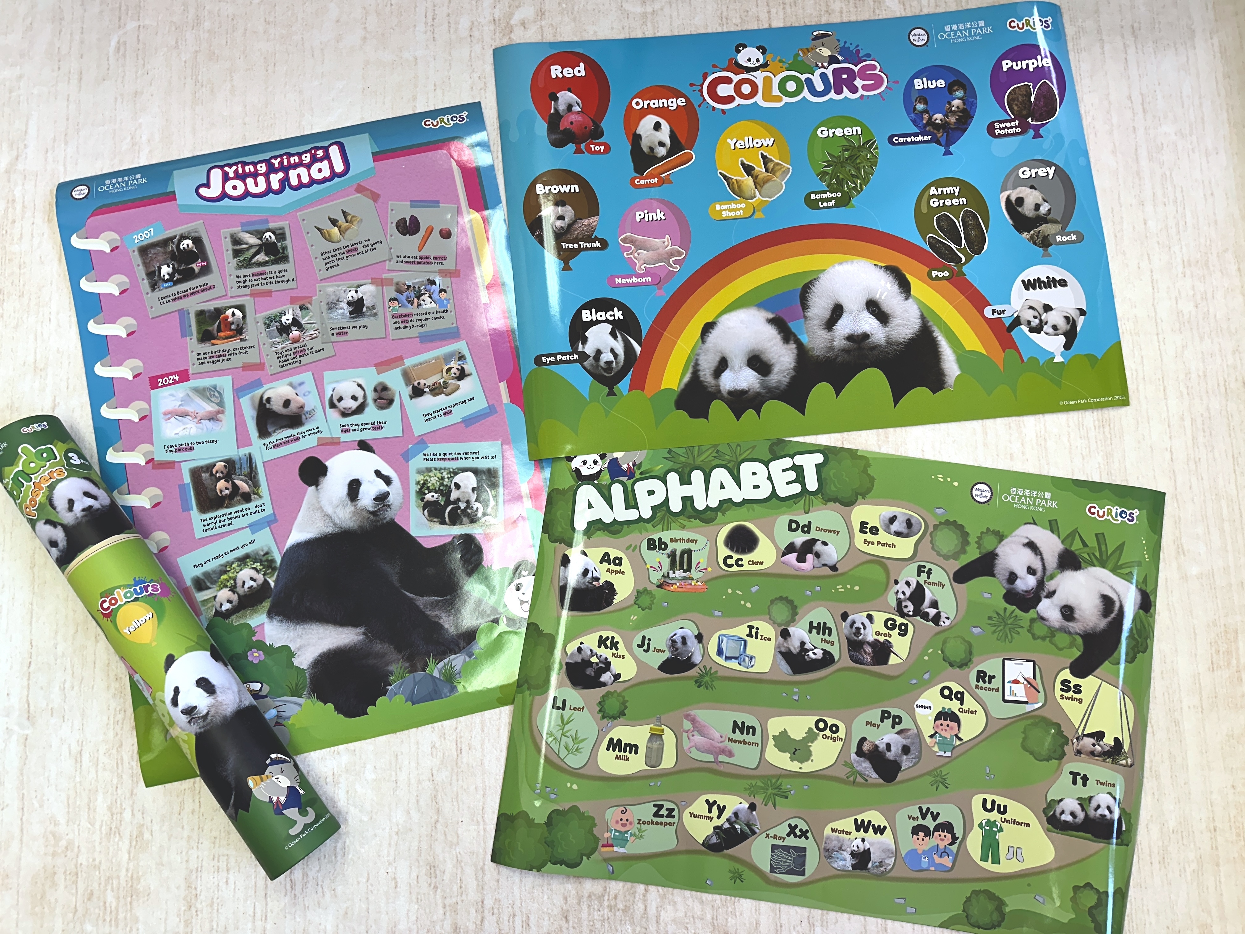 👶 1套3張圍繞大熊貓日常的幼兒學習海報,包括Alphabet大小階 / Colours顏色/ Ying Ying’s Journey盈盈的成長足跡