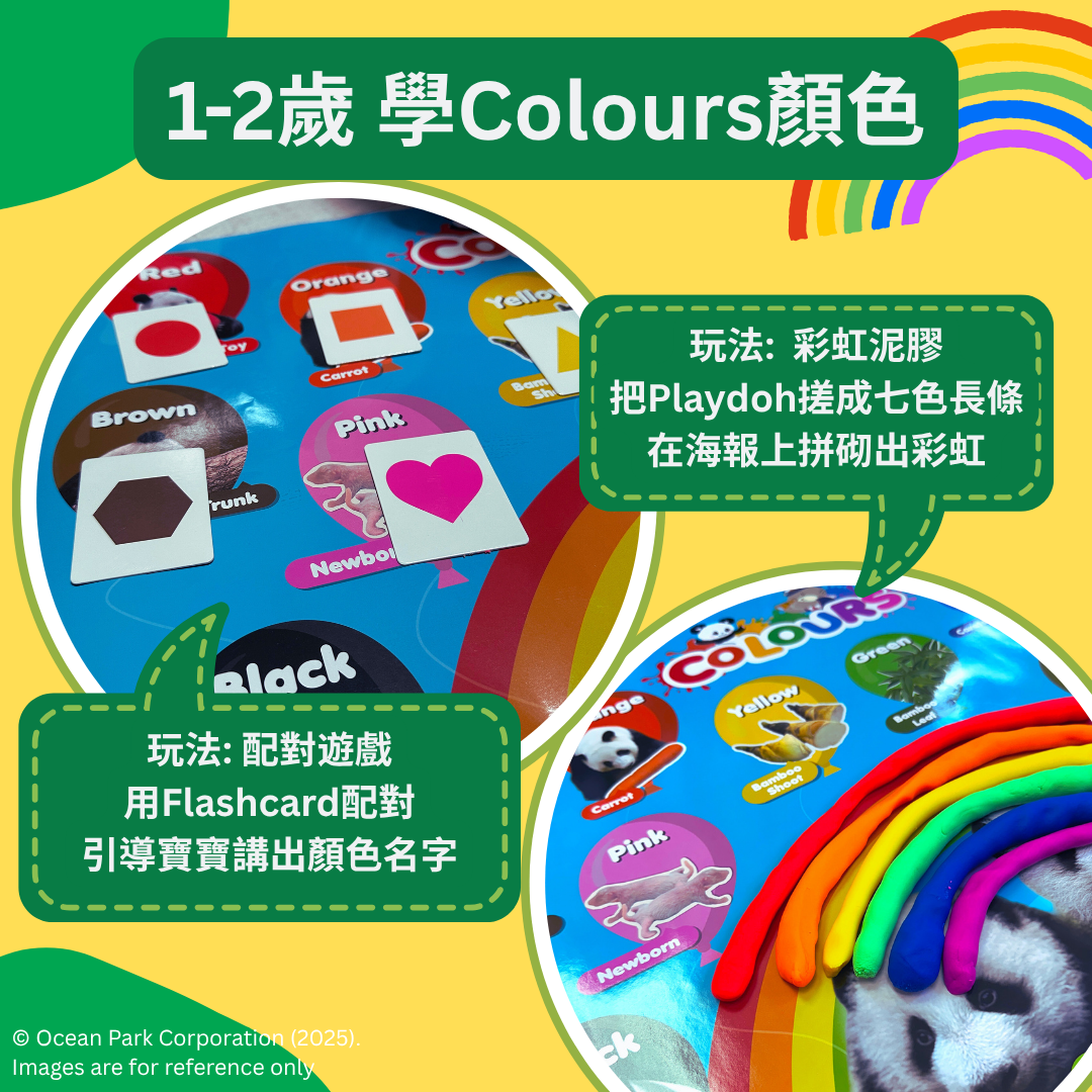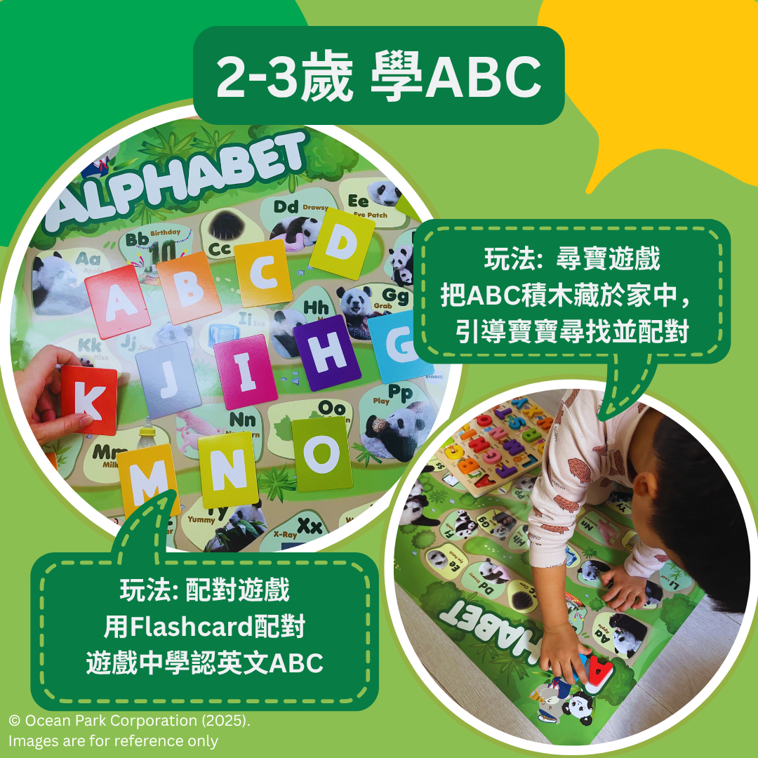 呢套海報除咗可以幫你了解大熊貓平日嘅生活喜好,仲可以由大熊貓日常去學認ABC、例如M For Milk,圖片就係大熊貓雙胞胎初時飲奶用嘅奶樽。又或者PINK就係初生大熊貓bb皮膚嘅PINK,成個學習過程非常有趣又易吸收,仲可以學到好多大熊貓Fun Facts!海報放地面、枱面或者貼牆學習都🉐️ 推薦大家配合英文配對卡、泥膠、積木或小絨球玩Matching Game👍👍