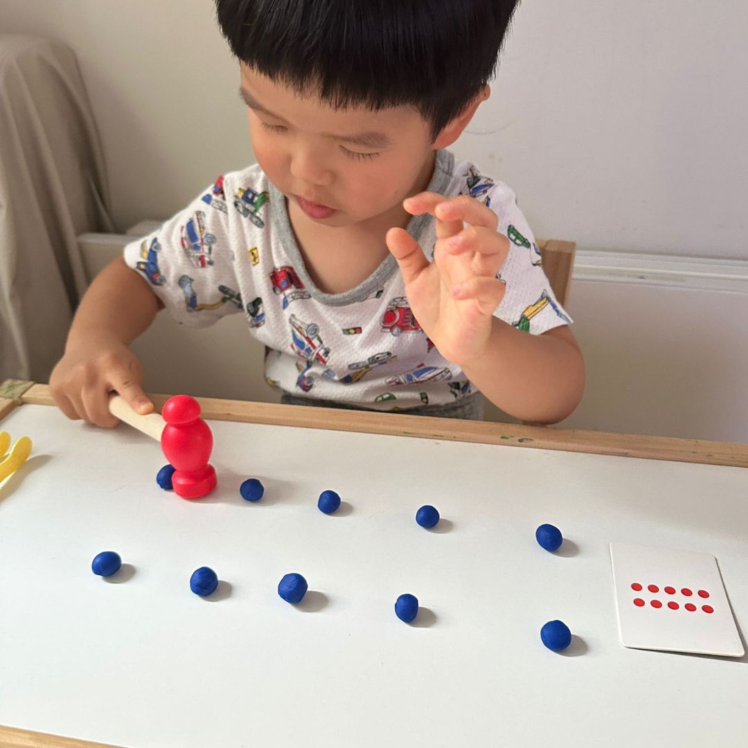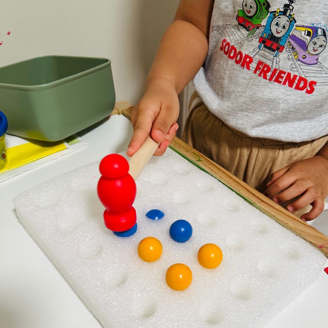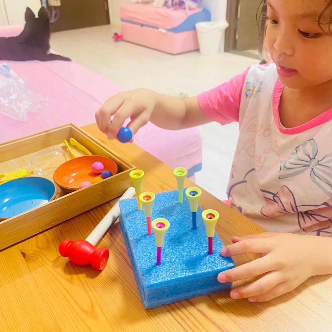 3-6歲:用【幼兒鎚仔】將彩虹golf tee揼進珍珠揼揼板上 #hammering