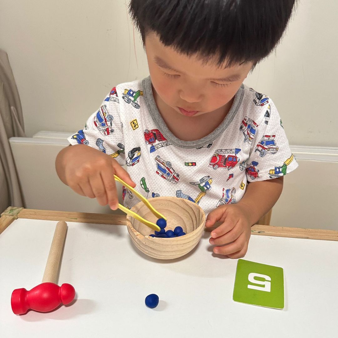 👶 寶寶小手肌進程:夾 》波波夾 》鉸剪 》鎚仔 》golf tee 》筷子 》揸筆寫字